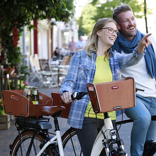 Praktisk, kjempestilig og solid trekasse for fastmontering på bagasjebrett.