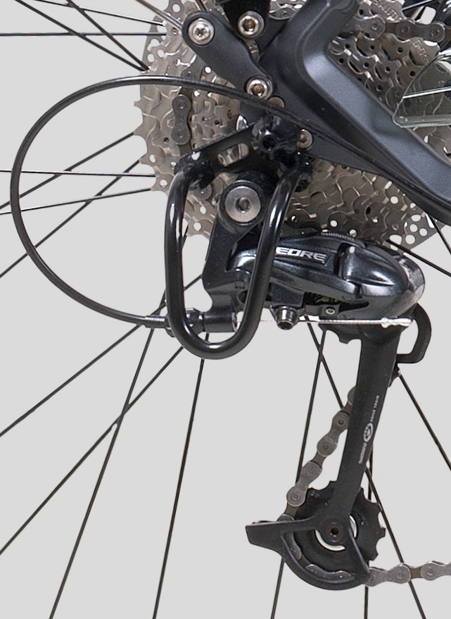 Beskytter bakgiret mot å bli bøyd hvis sykkelen blåser over